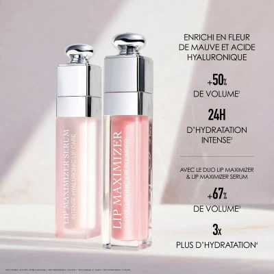 Formulé comme une émulsion non teintée qui fond sur les lèvres, Dior Addict Lip Maximizer Serum est enrichi en extrait de fleur de mauve et en acide hyaluronique, pour une action hydratante et visiblement repulpante. Pour la 1re fois, cette texture émulsion prodigue une action soin et volume démultipliée, et apporte aux lèvres une douceur et un confort incroyables.