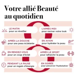 Cette brume rafraîchissante pour le visage réveille instantanément la peau et apporte une délicate touche d’hydratation* grâce à son vaporisateur ultra fin.