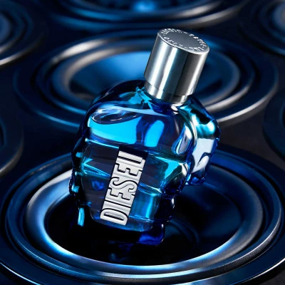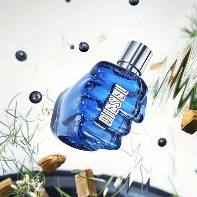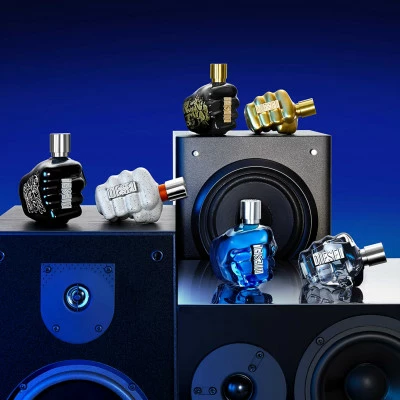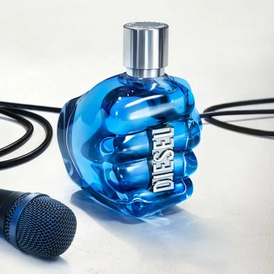 Prenant la forme d’un poing serré orné de l’iconique logo Diesel, le saisissant flacon bleu foncé symbolise le fait de saisir la vie à pleines mains.